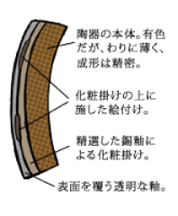 その後デルフトは、日本の古伊万里などの写しも製造しましたが、その一方でチューリップや帆船などオランダの風物や人々が暮らす日常の風景など、身近なものも題材にしました。この絵付けの豊かさは、17世紀に最盛期を迎えたオランダ絵画を代表する、デルフト出身の画家ヨハネス・フェルメールの作品にも現れています。彼の作品にはデルフト焼きのタイルや水差しが描かれていて、市民の暮らしに溶け込んでいたことが伺えるのです。