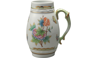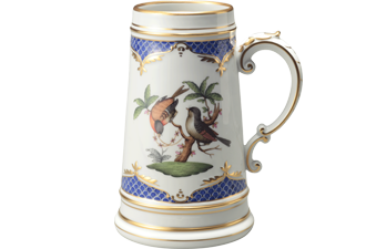 ヘレンドと言えば、東洋の磁器に大きな影響を受けた作品が有名です。1826年の創業当時は、特にシノワズリ(中国趣味)のテーブルウエアで、ヨーロッパ貴族に絶大な人気を博しました。その艶やかでエキゾチックな色使いや、精緻で優雅な細工からは、いかに一つひとつが丹念な手作りで生み出されたかが、一目で伝わってきます。英国のヴィクトリア女王、オーストリアのヨゼフ皇帝をはじめ、世界の王侯貴族や名家に愛用された数々のエピソードを持つのも頷けます。