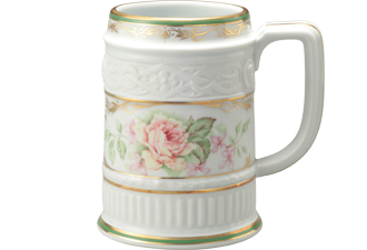 フランスならではの高い感度で時代に即した多彩なデザインを展開していますが、その中でもリモージュ特有の白い磁肌を生かした作品に定評があります。上品な王朝風の金彩や可憐な花柄を施したビアマグからも、フランスのエレガンスが伝わってきます。