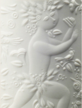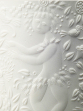 そして立体的な装飾をほどこした純白のボディ。モールド(鋳型)づくりがすべてを決めるといっても過言ではなく、その完成度によって焼き上がりの表情は大きく変わります。ヴィンブラッドのイメージする微妙な浮き彫りを完璧な形にできるのは、選び抜かれた陶工のみ。職人と作家の揺るぎない信頼関係がローゼンタールの独創的な磁器づくりを可能にしているのです。