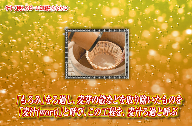 もろみから、最初に流れ出てくる麦汁を「一番搾り麦汁」と呼ぶ。一番搾り麦汁は、殻からしみ出す渋味成分が少ないので、できあがったビールにさっぱりとした味わいとストレートなのどごしをもたらすことができる。更にもろみに残っている糖分を得るため湯を加えろ過した麦汁を「二番搾り麦汁」と呼ぶ。復元したグルートビールは一番搾り麦汁のみを使用した。