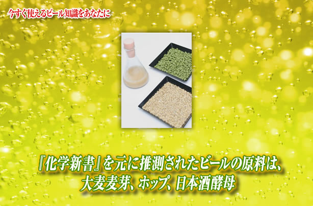 問題は酵母。当時はまだ酵母と発酵の関係が完全に解明されておらず、酵母は触媒であるとの学説が有力だった。また、海外の酵母を活力のあるまま日本に運ぶのは大変難しかったと考えられる。おそらく幸民は当時日本国内で入手することのできた日本酒醸造に使われる日本酒酵母が、ビール酵母と同じ働きをすると考え使用したのではないかと推測される。そこで今回の復元に使う材料は、大麦麦芽とホップ、そして日本酒酵母となったのである。