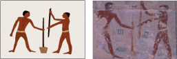古代エジプトの壁画には、当時の暮らしの様子が克明に描かれている。ここでは壁画などの資料から明らかになった、当時の人々とエンマーコムギの関係を、ヒエログラフ(表意文字)を通じて明らかにしてゆく。