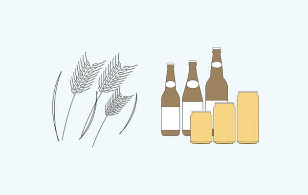 大麦のなかでもビールの原料になる大麦。ビール麦とも呼ばれています。主な生産地は、四国・中国・九州など西日本が多い。粒が大きく、穀皮が薄いという特徴があります。ビール製造工程では、二条大麦を一度発芽させて大麦中の酵素が活性化したところでビールの原料になります。発芽させた大麦のことを麦芽といいます。
