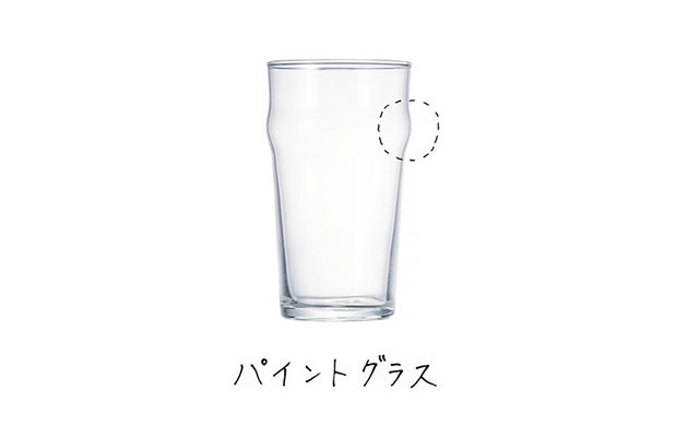 容量568ml(英国)のパイントグラスの上部にある特徴的な膨らみのこと。グラスに指がかかりやすいように配慮されたもので、この膨らみのおかげで香りがグラス内に滞留し、最後まで香りを残す効果もあります。パイントグラスは、チビチビと味わいながら香りを楽しむペールエールと相性が良いグラスです。