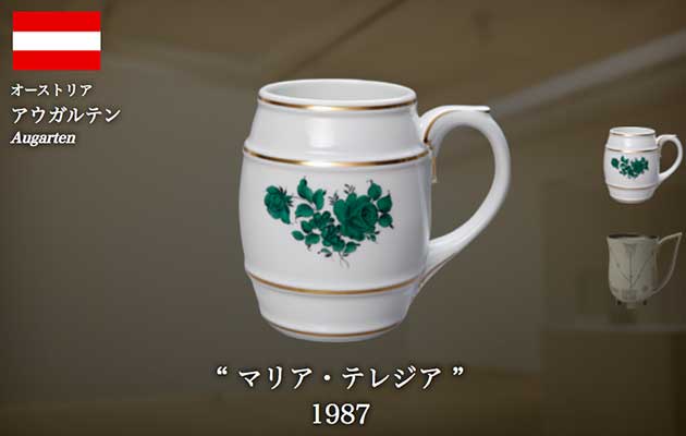 アウガルテンの前身は、1718年、マイセンに次ぐヨーロッパで2番目の陶磁窯としてハプスブルク王朝下で産声を上げたウィーン磁器工房。女帝マリア・テレジアの時代には国営化。女帝お抱えの窯として技を磨き、熟練した職人が手作りする芸術性の高い作品には、当時の栄華を物語るデザインが残る他、アール・デコ期に“ウィーン工房”のヨーゼフ・ホフマンとコラボレートした斬新なデザインも揃い、世界の表舞台で数多く愛用されています。