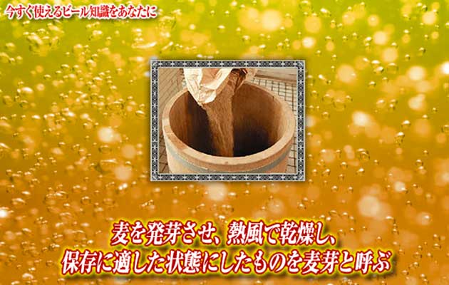 でんぷんを糖化する酵素。でんぷんなどを含み食糧や飼料として幅広く利用されている麦などの穀物は、発芽することで、でんぷんを分解するアミラーゼと呼ばれる酵素を多く生成します。麦芽のでんぷんをアミラーゼの作用により糖分に変えることを糖化といいますが、現代のビール造りでは、麦芽とともにコメやトウモロコシなどのでんぷんも利用しています。麦芽などを細かく砕いてお湯とともに、アミラーゼが働きやすい温度で混ぜ合わせ、糖分に変えていきます。