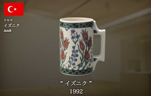 16世紀、オスマントルコ全盛期に、トルコ西北部のイズニクの町で開花。多彩な色使いが印象的な陶器。17世紀後半以降、生産は急速に衰え、復興の気運が高まったのは、19世紀に入ってから。それをリードしたのが、オスマン帝国の窯場に端を発するユルデュス社です。イズニク陶器の象徴であるターキッシュ・レッドの再現に成功し、1世紀以上にわたってトルコ特有の磁器復刻に力を注いでいます。