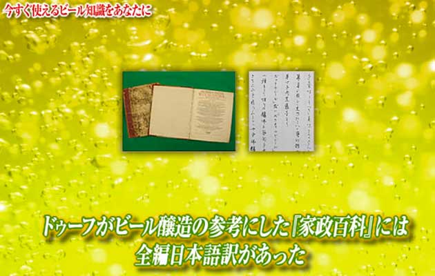 日本人で初めてビールを醸造したといわれる川本幸民のビール醸造法を記録した書物。内容は現在のビール醸造技術と比べて大きな違いはありません。製麦や酵素が最もよく働く温度についての正確な記述、糖化や酵母の働きについても詳しく記録されています。とくに幸民は糖化についてとてもよく理解していたようです。幸民は常温でできる上面発酵で醸造したと考えられますが、書物のなかには、上面発酵と下面発酵の醸造法の発酵温度の違いも記されていました。