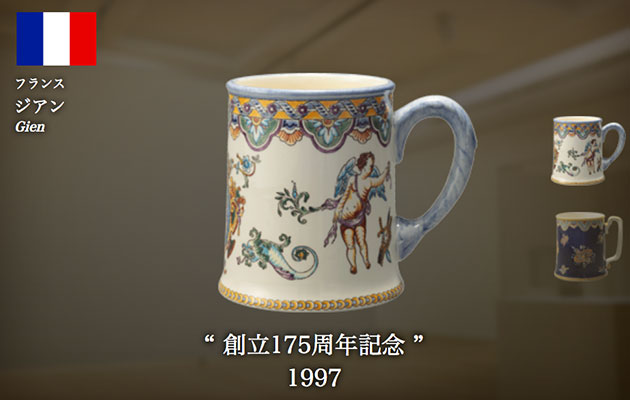 ジアンの故郷は、ロワール河流域に位置する町です。創業した1821年当時は、多くの王侯貴族が城を構え、狩りを楽しんでいました。彼らの間で評判になったのが、ジアンが手掛ける紋章入りの食器です。それは、イギリスの銅版転写に着色石版刷りを加えた多色刷りの技術を有していたジアンが、最も得意とするものでした。その後も陶器本来の温かみと雰囲気のある絵柄で人気を博し、今では世界中に愛好者を持っています。特に19世紀後半に開発された深みのある青は「ジアンブルー」と呼ばれ、ジアンを代表する色として広く知られています。