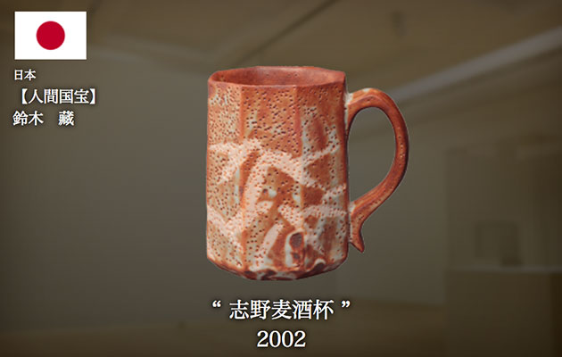 1934-。現代の志野焼を代表する陶芸家。「藏志野」は、ガス窯による焼成で窯変の偶然性に頼らず、独自の志野の世界を表現しています。茶の湯が隆盛を誇った時代に、茶陶として珍重された美濃の志野焼は、長石釉で焼いた日本で初めての白い陶器として知られており、絵柄の入った絵志野や、ねずみ色の地の色と白の文様とのコントラストが魅力の鼠志野が有名です。