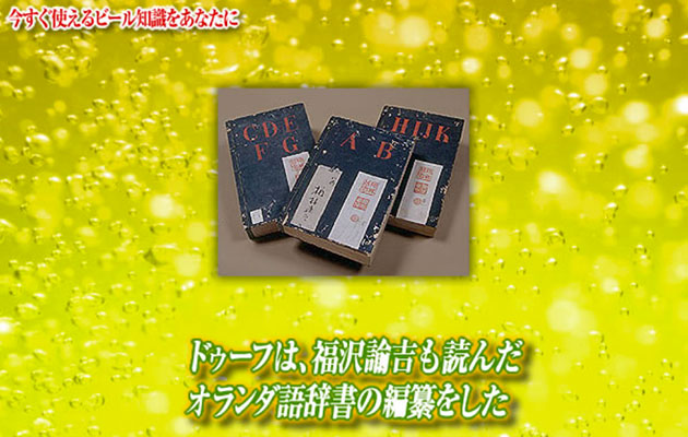 ヘンドリック・ドゥーフが残したオランダ語の辞書。日本滞在中に編纂。オランダ船の来航が途絶え、商館長としての仕事が激減したドゥーフは、オランダ人のフランソワ・ハルマがつくった『蘭仏辞典』をもとに、蘭日辞典を編纂・制作をおこないました。完成はドゥーフ帰国後の1833年。清書した一部が幕府に献上されました。福沢諭吉も読んだと言われる『ドゥーフ・ハルマ』は、幕末の蘭学者にとって、なくてはならない辞書でした。