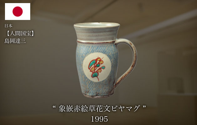 1919-2007。民芸陶器の代表的な産地として知られる益子の素朴な魅力を世界に広めた立役者である陶匠・濱田庄司に師事。民芸における「用の美」を継承しながら、縄文の文様を施した後に別の土をはめ込む(象嵌する)縄文象嵌という独自の技法を確立させました。96年には師に継いで益子出身で二人目となる人間国宝に認定されました。