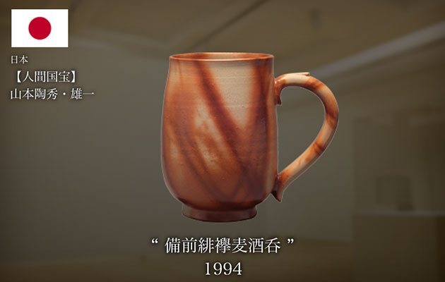 1906-1994。金重陶陽、藤原啓に続いて、備前焼で3人目の人間国宝に認定された人物。山本陶秀が監修し、その息子で現在は備前焼の大家として知られる山本雄一が手掛ける。焼成時に稲藁が高温で焼け、陶肌に鮮やかな線条文を残す緋襷(ひだすき)は、もとは偶然の産物でしたが、これを意図した通り自在に生み出す技法を編み出したのが山本雄一です。土は、観音ビヨセを特別に使用。これは、かの北大路魯山人が「世界一の土」と激賞した、備前で最高と言われる粘土です。