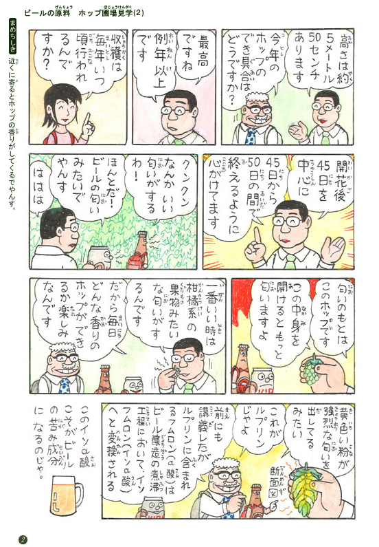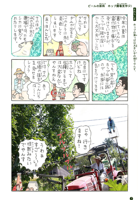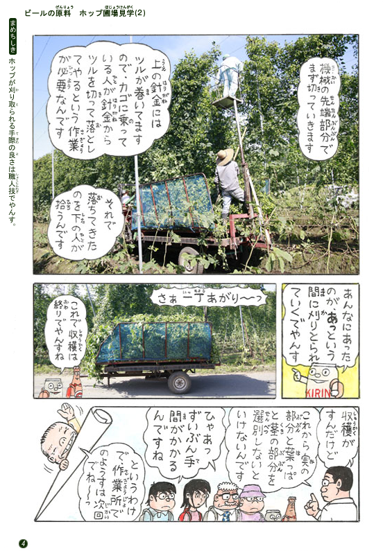 ホップ圃場見学(2) 収穫までの「苦労話」を聞く