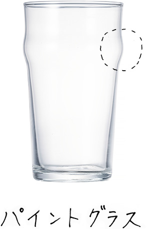 のどごしを楽しむというよりは、チビチビと味わいながら香りを楽しむのが、ペールエールのたしなみ方です。そんなペールエールには、大きなグラス、パイントグラス(568ml:英)がおすすめです。グラスの上部の膨らみは「ノニック(nonic)」と呼ばれ、グラスに指がかかりやすいように配慮されたもので、この膨らみのおかげで香りがグラス内に滞留し、最後まで香りを残す効果もあります。