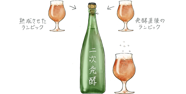 2〜3年、樽で熟成させたランビックと、熟成が1年ほどの若いランビックを、ブレンドして作ったものを「グーズ」と呼びます。びんに詰めてからもさらに長期間熟成させますが、その間にびんの中で二次発酵が行われ、最初のランビックとはまったく違ったビールができあがります。半年から、長いものでは3〜7年寝かせて作られます。