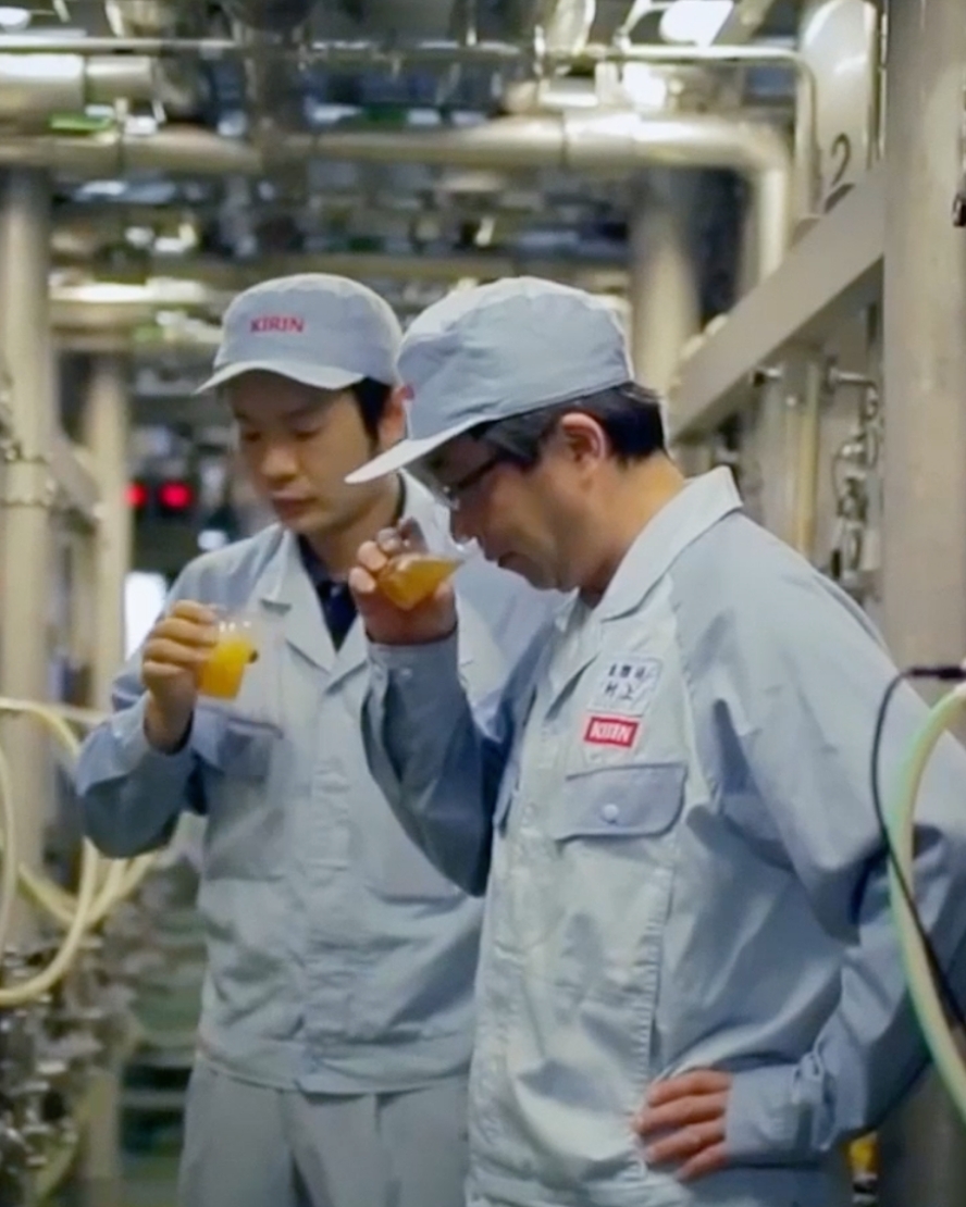 ドイツ語に『Weiter-trinken(バイター・トリンケン)』という言葉があります。『一度飲むと、もう一度飲みたくなる』という意味です。キリンビールが追求してきたビール醸造の哲学で、そこに到達するカギはバランスです。ドイツの本格ビールに範をとったラガー、澄んだ雑味のない味わいの一番搾りという二枚看板も、先人から脈々と受け継いできたバランスの美学から生まれました。