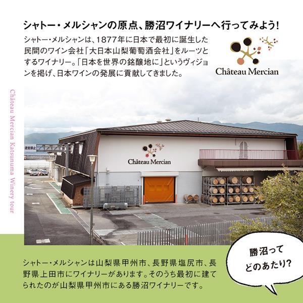 シャトー・メルシャンは、1877年に日本で最初に誕生した民間のワイン会社「大日本山梨葡萄酒会社」をルーツとするワイナリー。「日本を世界の銘醸地に」というヴィジョンを掲げ、日本ワインの発展に貢献してきました。
