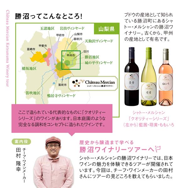シャトー・メルシャンの勝沼ワイナリーでは、 日本ワインの魅力を体験できるツアーが開催されています。今回は、チーフ・ワインメーカーの田村さんにツアーの見どころを教えてもらいました。