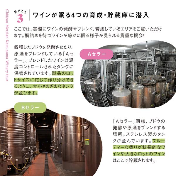 ここでは、実際にワインの発酵やブレンド、育成しているエリアをご覧いただけます。瓶詰めを待つワインが静かに眠る様子が見られる貴重な機会!