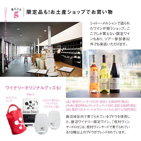 勝沼地区内で育てられているブドウを使用した、勝沼ワイナリー限定ワイン。「祝村ヴィン