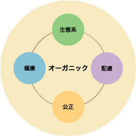オーガニックの原則として「生態系」「健康」「公正」「配慮」の4つを掲げています。