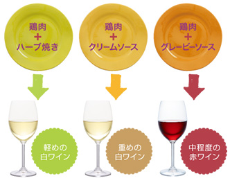 さっぱりと仕上げた料理には軽いワインが、こってりと仕上げた料理には重たいワインが相性抜群! ということなんです。