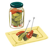 【ピクルス、ザワークラウトで酸味のアクセント】