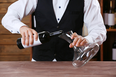 ワイン等のお酒を入れて食卓に供するガラス製の容器のこと。デキャンタを用いることで、熟成した赤ワインの澱(オリ)を取り除くことができたり、空気に触れさせることで香りが豊かになり、味わいにふくらみを出させることができます。
