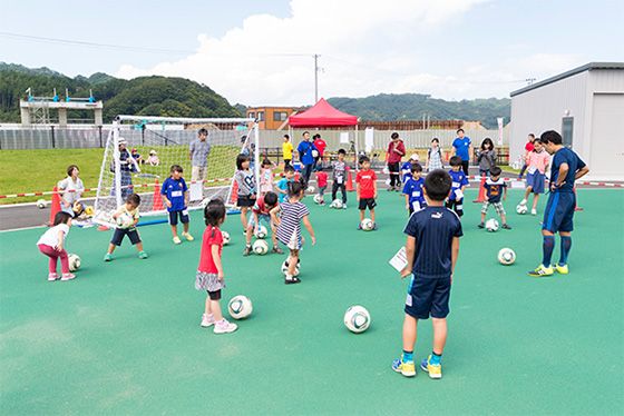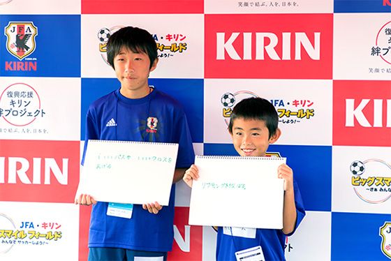 キリングループは「復興応援 キリン絆プロジェクト」の一環として、公益財団法人日本サッカー協会(以下、JFA)との共催で、岩手・宮城・福島の小学校で行ってきたサッカー教 室「JFA・キリン スマイルフィールド」を、東日本大震災から6年となった2017年、「JFA・キリン ビッグスマイルフィールド」として、より地域に寄り添い“元気づくり”をお手伝いする活動に進化しました。