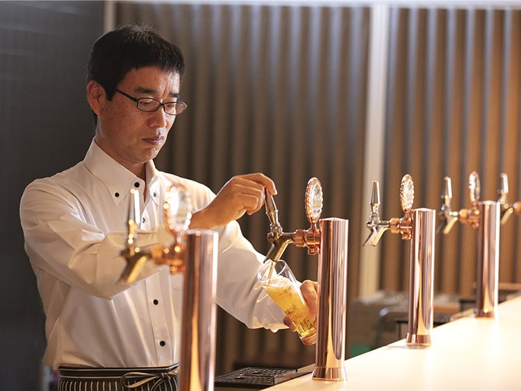 「ブルワリードラフトマスター」*がビールの鮮度、サーバーの状態、グラス、注ぎ方まで徹底的にこだわっておいしい「一番搾り」を提供します。
