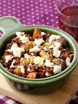 - 3にトマトソース、バルサミコ酢を加え軽く煮詰め、ナッツ、いちじくを加えて塩・コショウで味を調える。