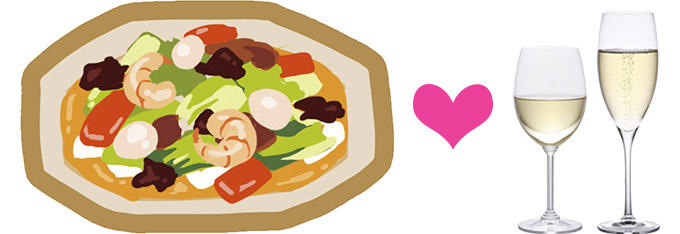 野菜のシャキシャキした食感や甘みをたっぷり堪能できる八宝菜。食材のおいしさを引き出すシンプルな塩の味付けには、フレッシュでみずみずしい味わいの白ワインやスパークリングワインがぴったり♪