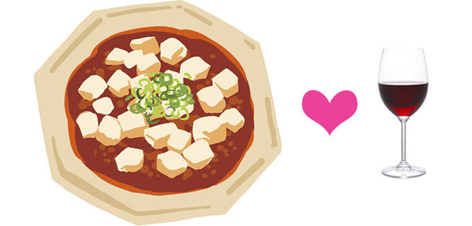 唐辛子と山椒のピリッとした辛みのきいた麻婆豆腐には、ミディアムボディからフルボディの赤ワインがおすすめです。果実味のあるフレッシュな味わいの赤ワインなら、氷を入れてロックワインにしてもGood♪