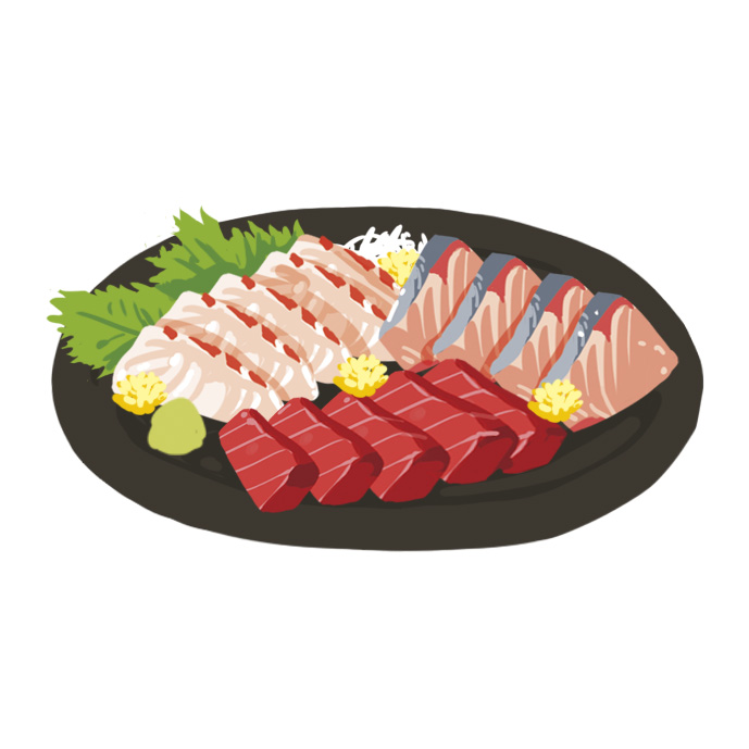 お刺身の色に合わせて、青魚や白身魚ならスパークリングワインや軽めの白ワイン、マグロや赤身の魚ならロゼや軽めの赤ワインがおすすめ