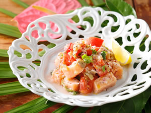 ロミロミサーモンは、フォーマルな席でも用意される伝統的なハワイ料理の一つ。