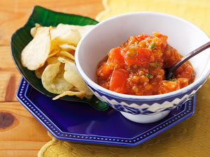 ハワイでは、チップス売り場に必ずサルサソースが置いてあるほど定番の組み合わせ。塩味のきいた厚切りのポテトチップスに、ピリッとした辛さのサルサソースを大量につけて食べるのがハワイ風です。