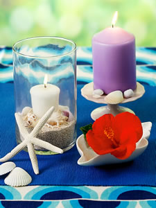 ガラスのグラスや花瓶に砂や貝殻を入れて、キャンドルを立てれば、即、リゾート気分に。手持ちのキャンドルのそばに貝殻を添えるだけでも、ハワイのビーチを連想させてくれそう。