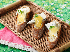 カットしたバゲットに塩味の強いブルーチーズ、お好みのジャムをのせてでき上がり!