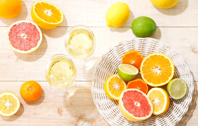 もともとブドウからつくられているワインですが、品種、土壌、醸造方法によって、さまざまなアロマを感じることができます。特に夏にキリっと冷やして飲みたくなる白ワインには、みずみずしく爽やかな柑橘系フルーツのアロマがたっぷり! 自分の好きな柑橘系の香りからワインの品種を選んでみるのも、ワインの楽しみ方のひとつです。