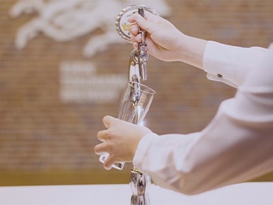 オンライン工場見学では特別に、ご自身でサーバーから一番搾りを注ぐ疑似体験をお楽しみいただけます!臨場感のある映像と立体音響で体感しよう!