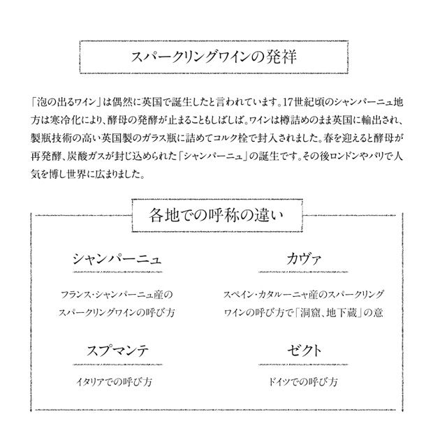 各国での呼び方や味わいの違い、スパークリングワインのスマートな開け方を参考にすると一層楽しめるはず。