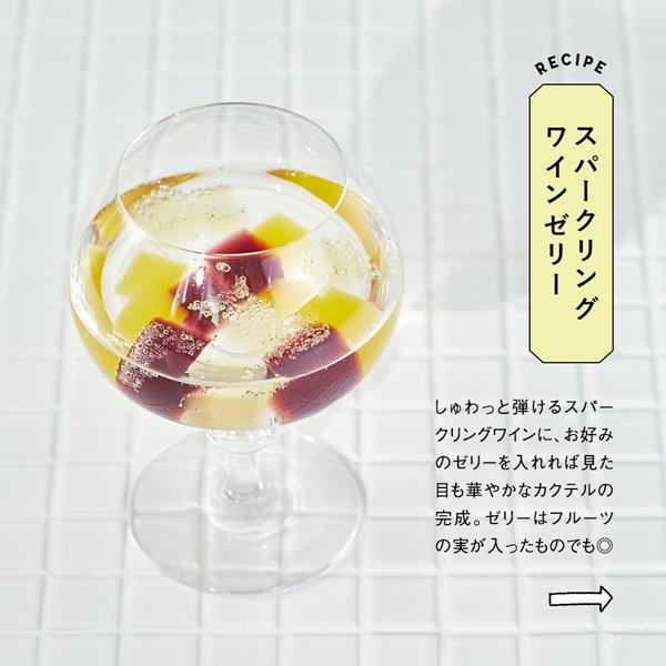 しゅわっと弾けるスパークリングワインに、お好みのゼリーを入れれば見た目も華やかなカクテルの完成。ゼリーはフルーツの実が入ったものでも◎