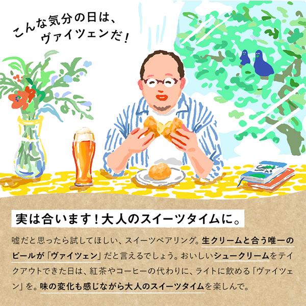 嘘だと思ったら試してほしい、スイーツペアリング。生クリームと合う唯一のビールが「ヴァイツェン」だと言えるでしょう。おいしいシュークリームをテイクアウトできた日は、紅茶やコーヒーの代わりに、ライトに飲める「ヴァイツェン」を。味の変化も感じながら大人のスイーツタイムを楽しんで。
