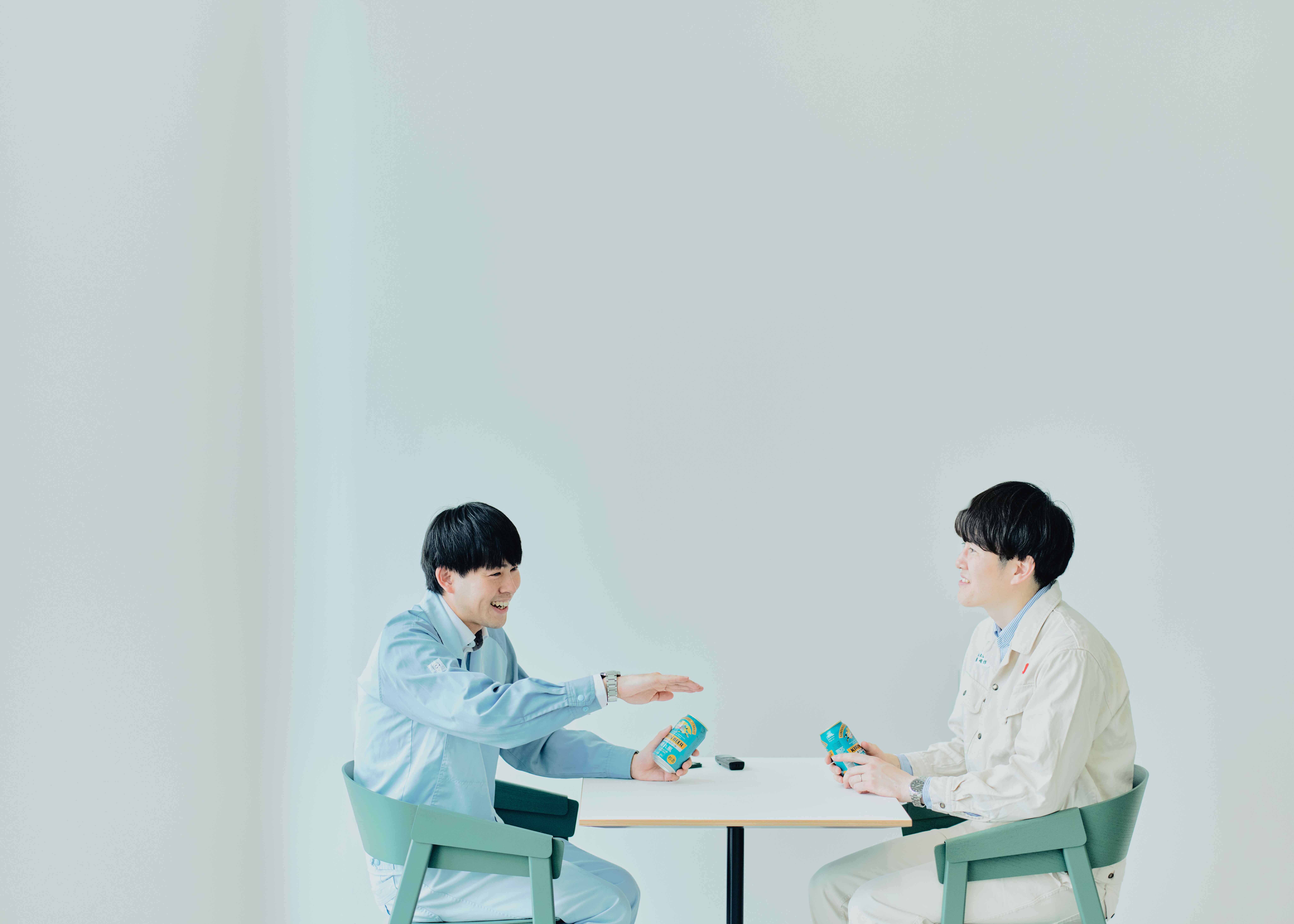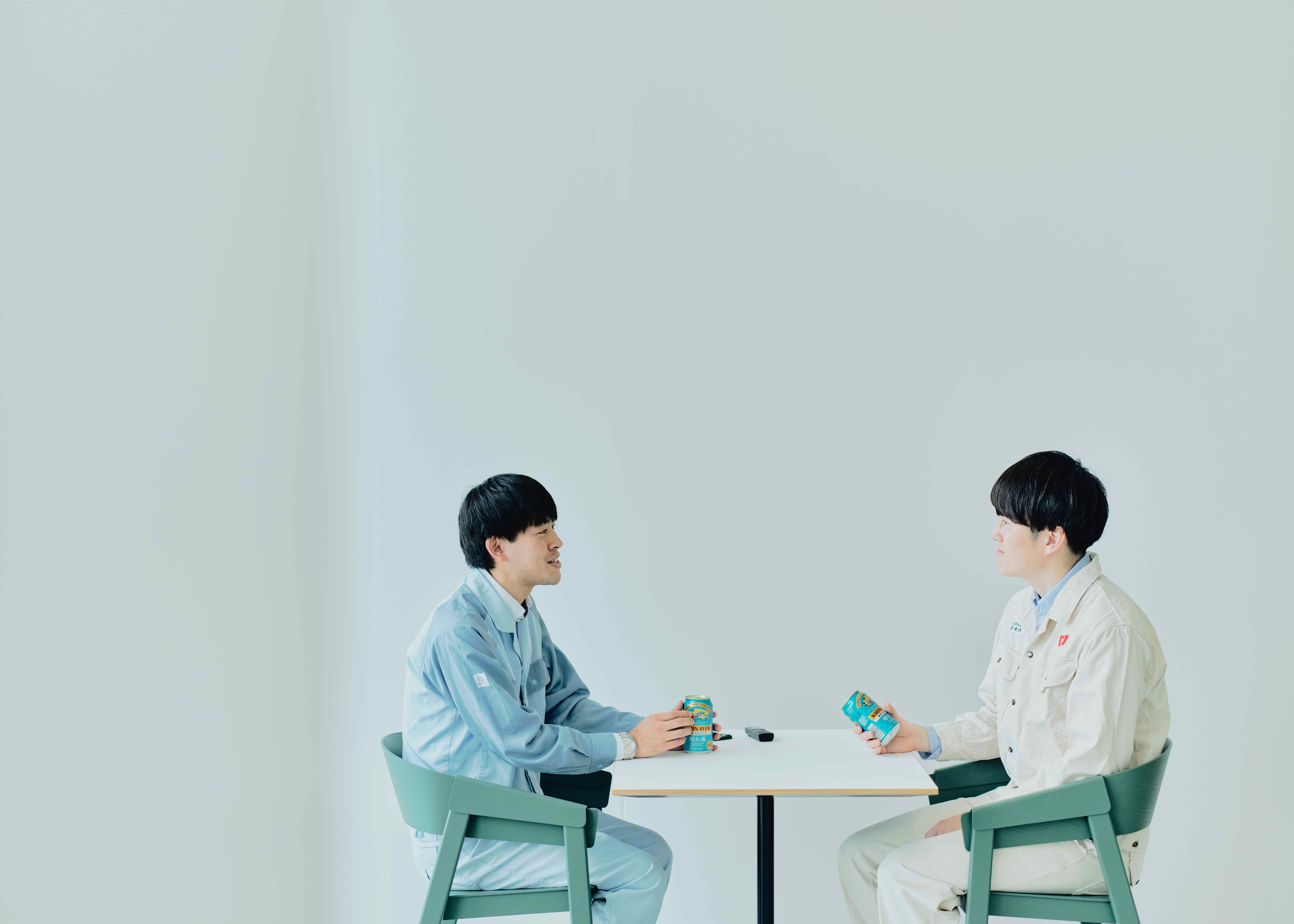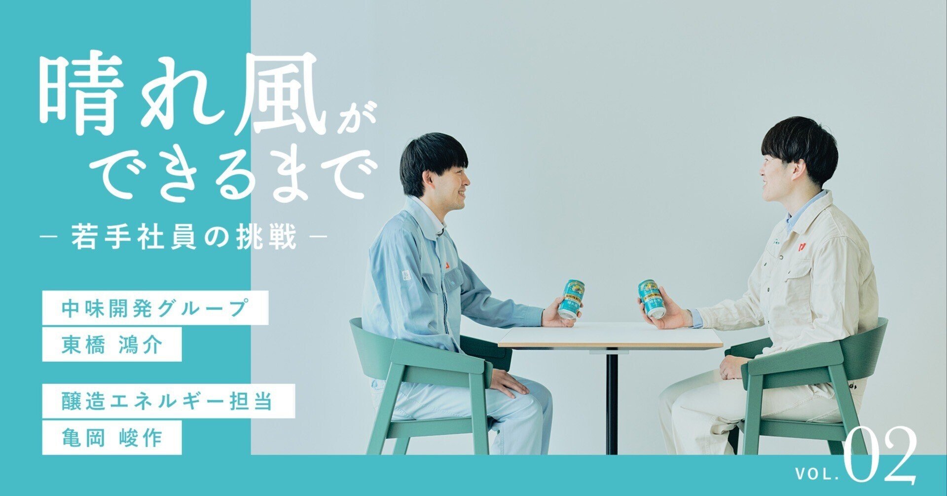 『晴れ風』のレシピづくりを担当した入社7年目の東橋鴻介と、醸造を担当した入社3年目の亀岡峻作が語る、ビールの新たな味わいへの追求と試行錯誤の日々。そして、商品の中味をつくる開発や製造における仕事の醍醐味とは?