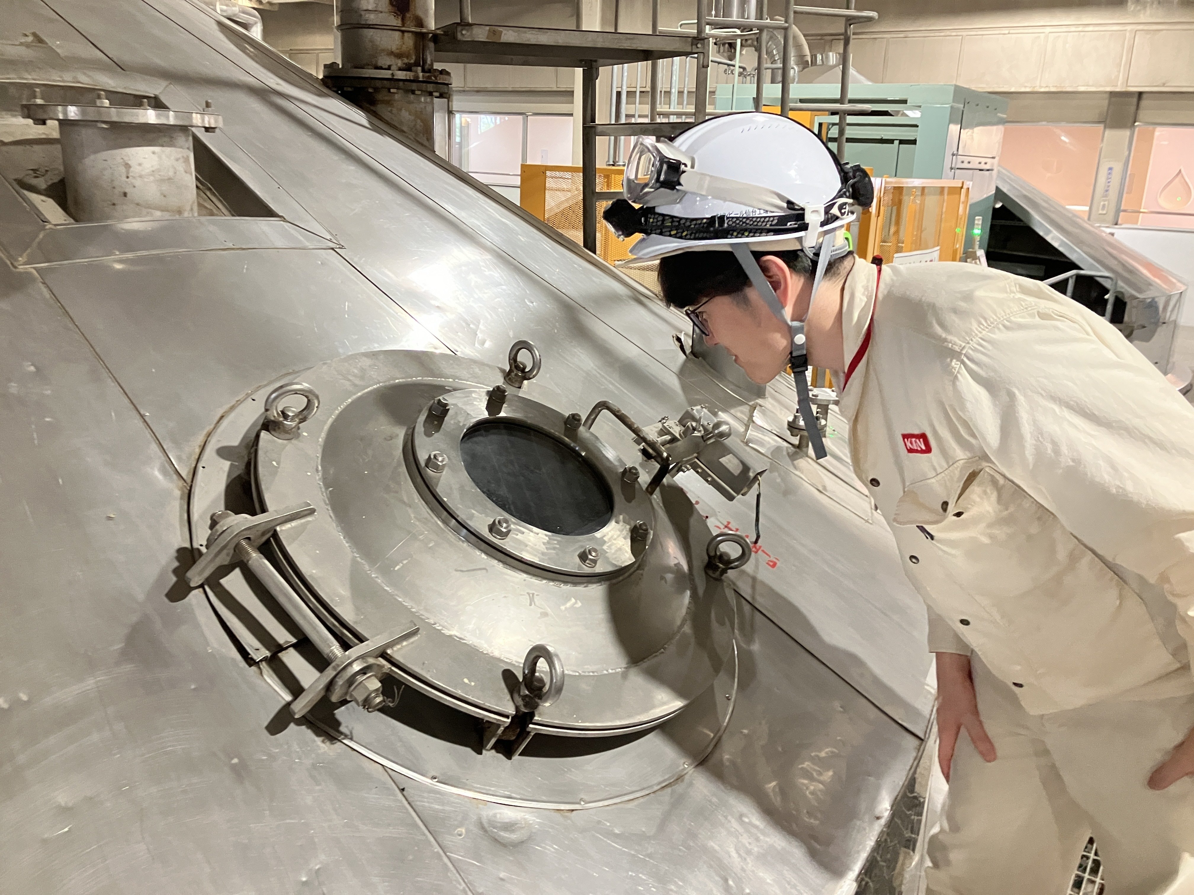 亀岡:東橋さんたちが開発したレシピをもとに、工場で実際に大量生産していくのが、私たち醸造エネルギー担当の仕事です。『晴れ風』の味がコンセプトどおりに再現できているかを確認しながら、中味を改良していく作業をしています。