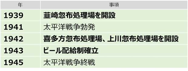 しかし、悪化する戦況によりその生産量は減少していきます。加えて戦争末期の1945年5月、政府によるビール配給禁止が発表され、ビールの仕込みが禁じられたことにより、ホップ栽培を中止する農家が続出します。終戦後にビールの醸造は再開しますが、国内の深刻な食料不足を背景にホップから他の食料への生産転換は加速しました。