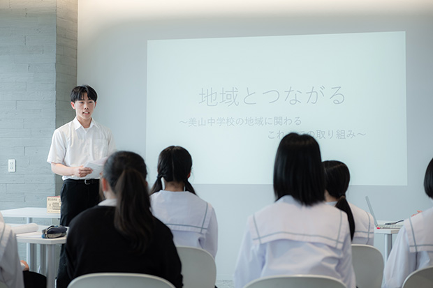 まずはじめに、美山中学校の皆さんから日頃の活動について発表していただきました。