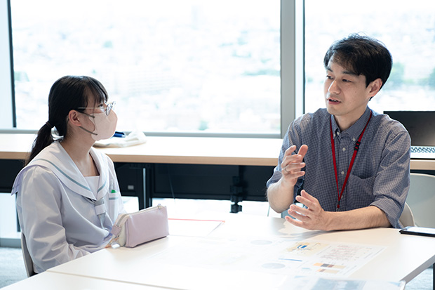 その後、キリンが取り組んでいるテーマごとにグループに分かれ、キリンの社会課題へのアプローチについて議論を交わしました。議論がはじまると、生徒たちは自分たちの生活を思い浮かべながら、キリンのメンバーと意見を交換していました。